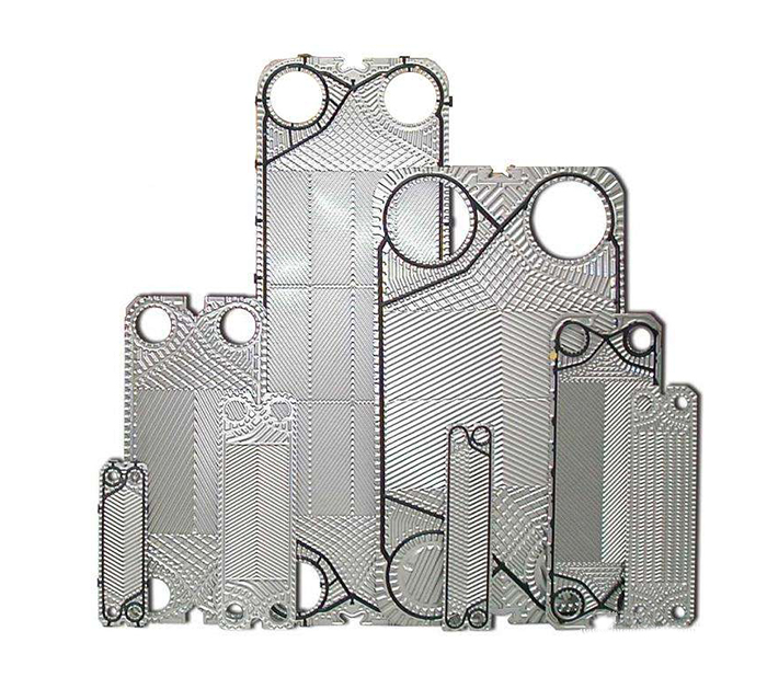 板式換熱器板片是專門用于板式換熱器中用來隔離介質和進行熱交換的板片,是板式換熱器的重要組成部分。它的主要材質有不銹鋼,鈦及鈦鈀,20Cr,18Ni,6Mo,合金,銅等。密封原理:在波紋板片上粘有密封墊,密封墊設計成雙道密封結構,并具有信號孔。當介質如從第一道密封泄漏時,可從信號孔泄出,便能及早發(fā)現(xiàn)問題加以解決,不會造成兩種介質的混合。